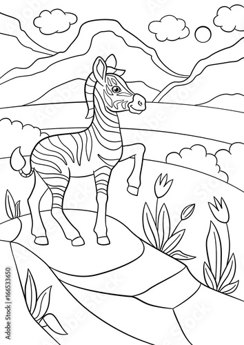 Coloring Pages Little Cute Baby Zebra Stands And Smiles Stock Vector Adobe Stock