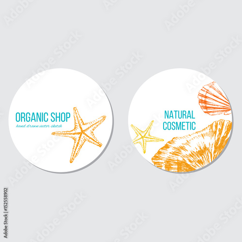 Seashells Starfish Hand Drawn Vector Color Sketch Isolated On White Background Round Frame Underwater Decorative Marine Sticker Template Label Layout Design For Card Beauty Salon Cosmetic Menu Stock Vector Adobe Stock