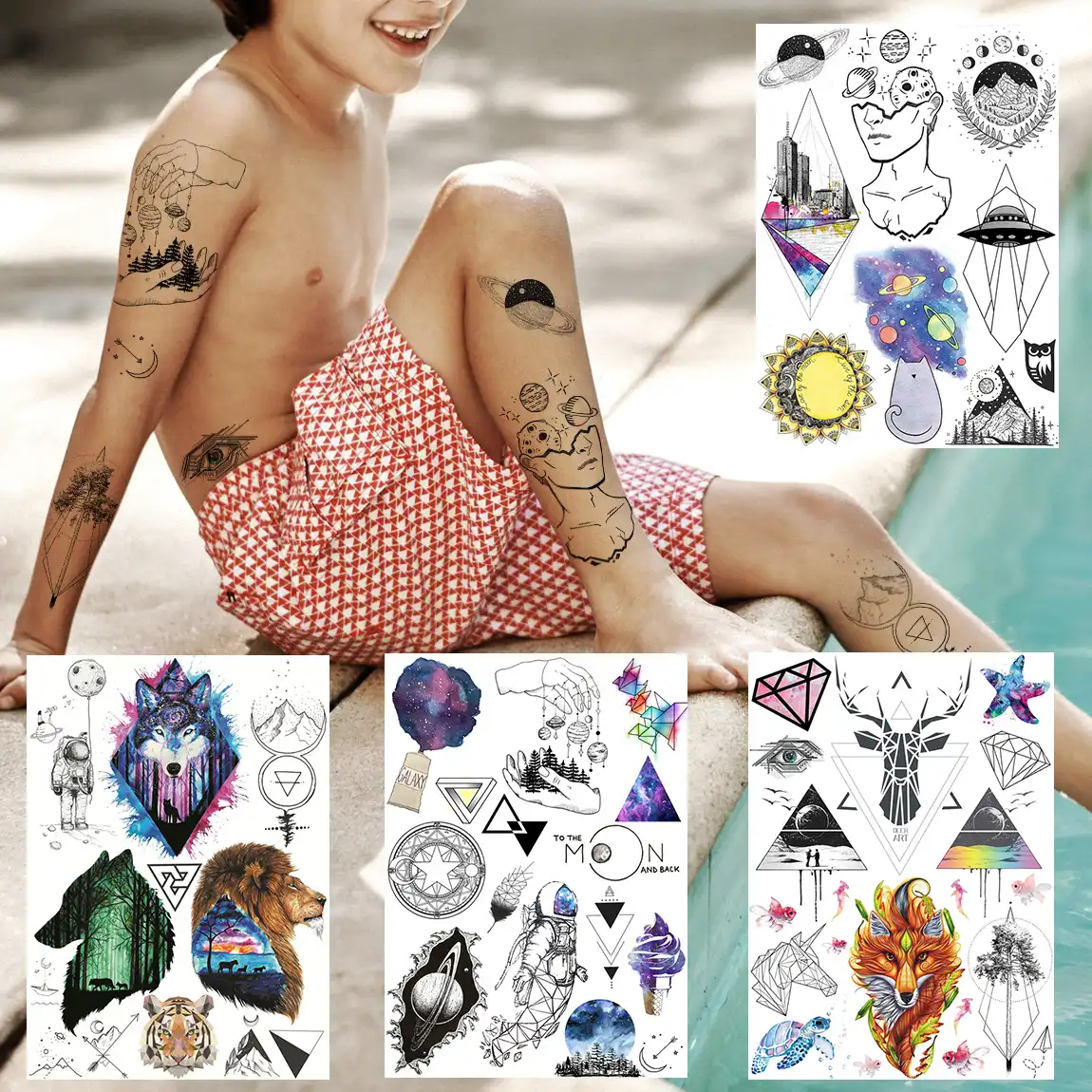 Waterproof Body Art Temporary Tattoos Sticker For Boys Girls Kids Tatoos Fake Space Wolf Fox Diamond Tatoos Realistic Painting Temporary Tattoos Aliexpress
