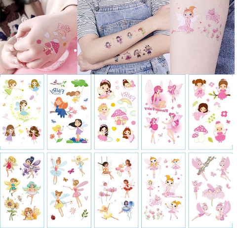 Buy Online 10pcs Kids Temporary Tattoos Cute Flower Fairy Fake Tattoo Sticker Angel Tatoo Waterproof Tatto Hand Arm Art Tattoo For Girl Alitools