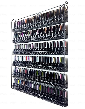 Amazon Com Pana Black 6 Tier Large Wall Mounted Metal Rack Fit Up To 100 Nail Polish Bottles For Home Salon Business Spa Etc Health Personal Care