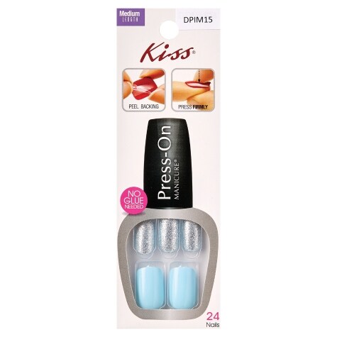 Kiss Light Blue Glitter Medium Press On Manicure Nails 24 Ct Family Dollar