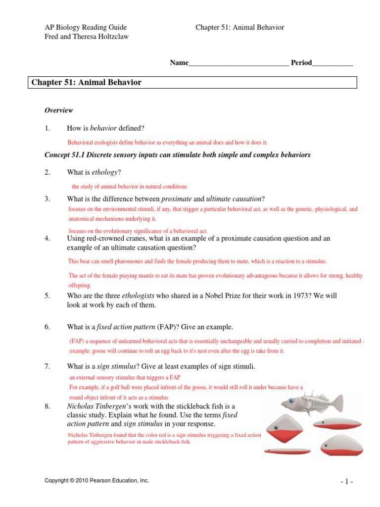 Ap Biology Chaper 51 Reading Guide Ethology Sexual Selection