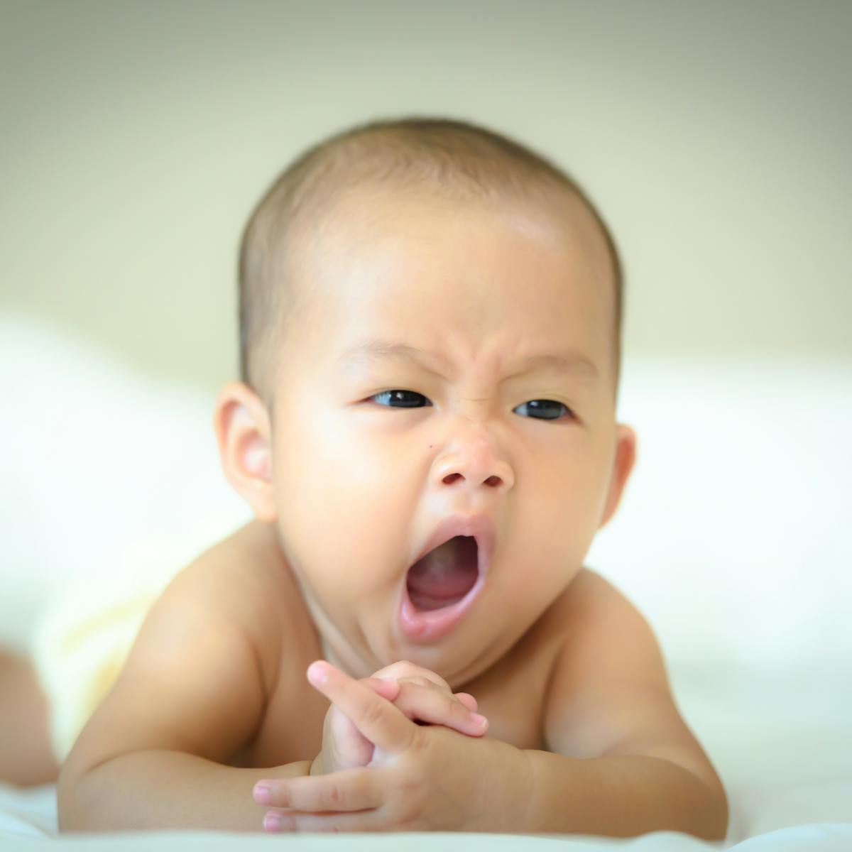 Cute Baby Boy Yawning Lying On Blanket With Stuffed Animal By Lauren Lee Sleepy Yawning
