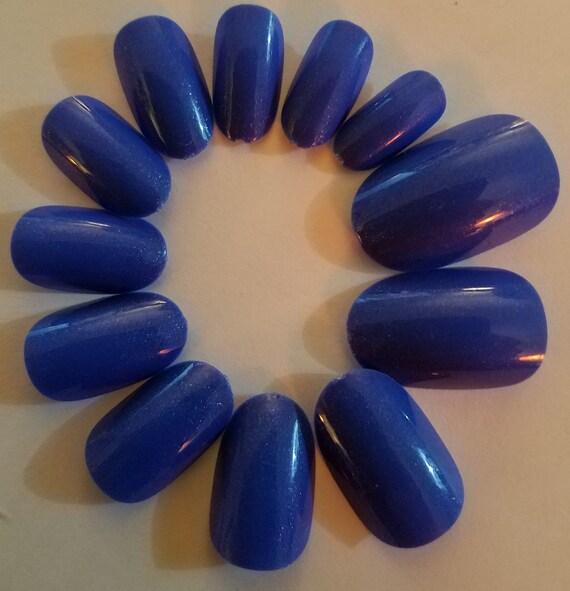 Mani Art Royal Blue Color Short Oval Press On Nail Tips 24 Etsy