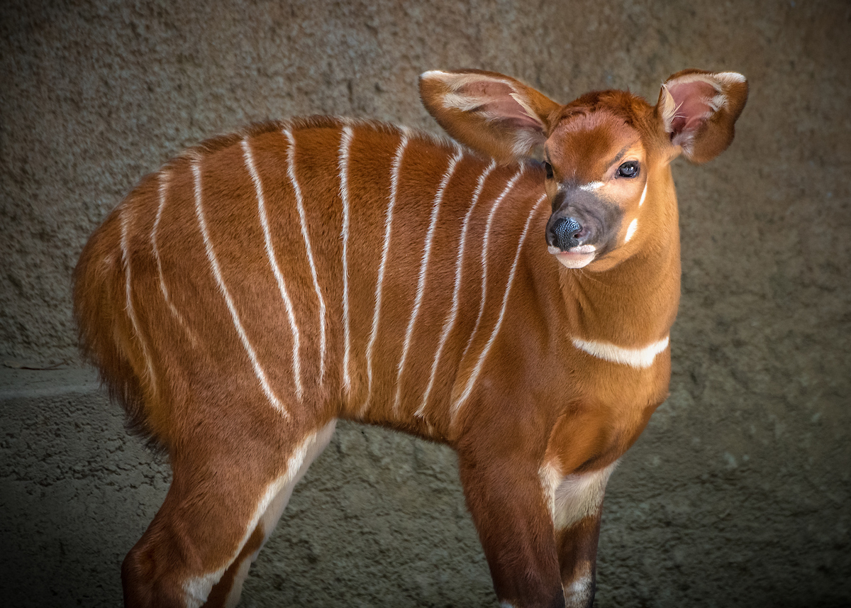 It has an auburn or chestnut coat with 10 to 15 vertical whitish-yellow stripes running down its sides. Taronga Zoo is celebrating the birth of an incredibly rare animal an Eastern Bongo calf born to first-time mother Djembe on 2 April. There are two currently recognized subspecies the mountain or eastern bongo and the lowland or western bongo.