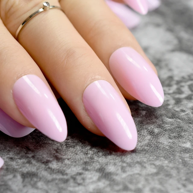 Kathshop 24pcs Solid Baby Pink Oval Sharp End Stiletto False Nails Light Pink Pointed Fake Nails Tips Manicure Artificial Nails Amazon Ca Health Personal Care
